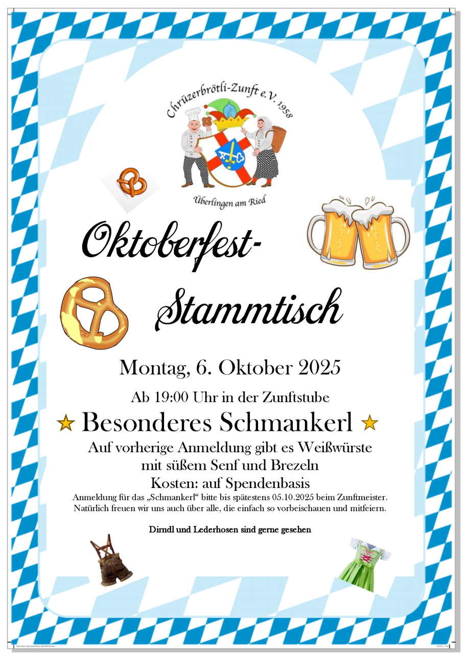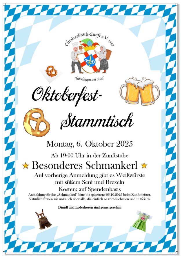 Stammtisch immer am 1. Montag im Monat ab 20:00 Uhr in der Zunftstube im Rathaus 1.OGAlle Freunde, Fasnachtsbegeisterte und Interessierte sind herzlich eingeladen.